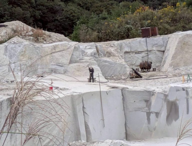 また、稲田石を採掘されている堀石材工業さんの採掘場も見学させていただきました