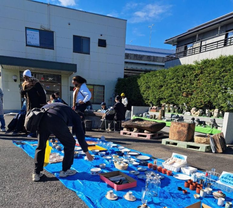 また、高齢者向けの生活支援サービスとして2年前から始めている「まごころサポート」のお部屋片づけにおいて、使われなくなり処分される予定であった食器をブルーシートに並べて、無料で提供しました。