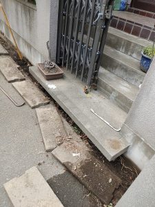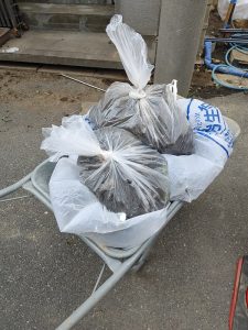 なお、泥を入れた袋は、通常のゴミ出しでは回収不可であることが分かり、御依頼者様の了承を得て、ご自宅の敷地内に広げながら散布させていただきました。
