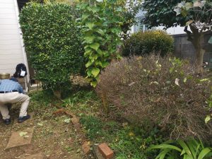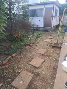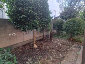 2025.10.23本日は一人暮らしの女性シニアの方の中庭の草取りを行いました。